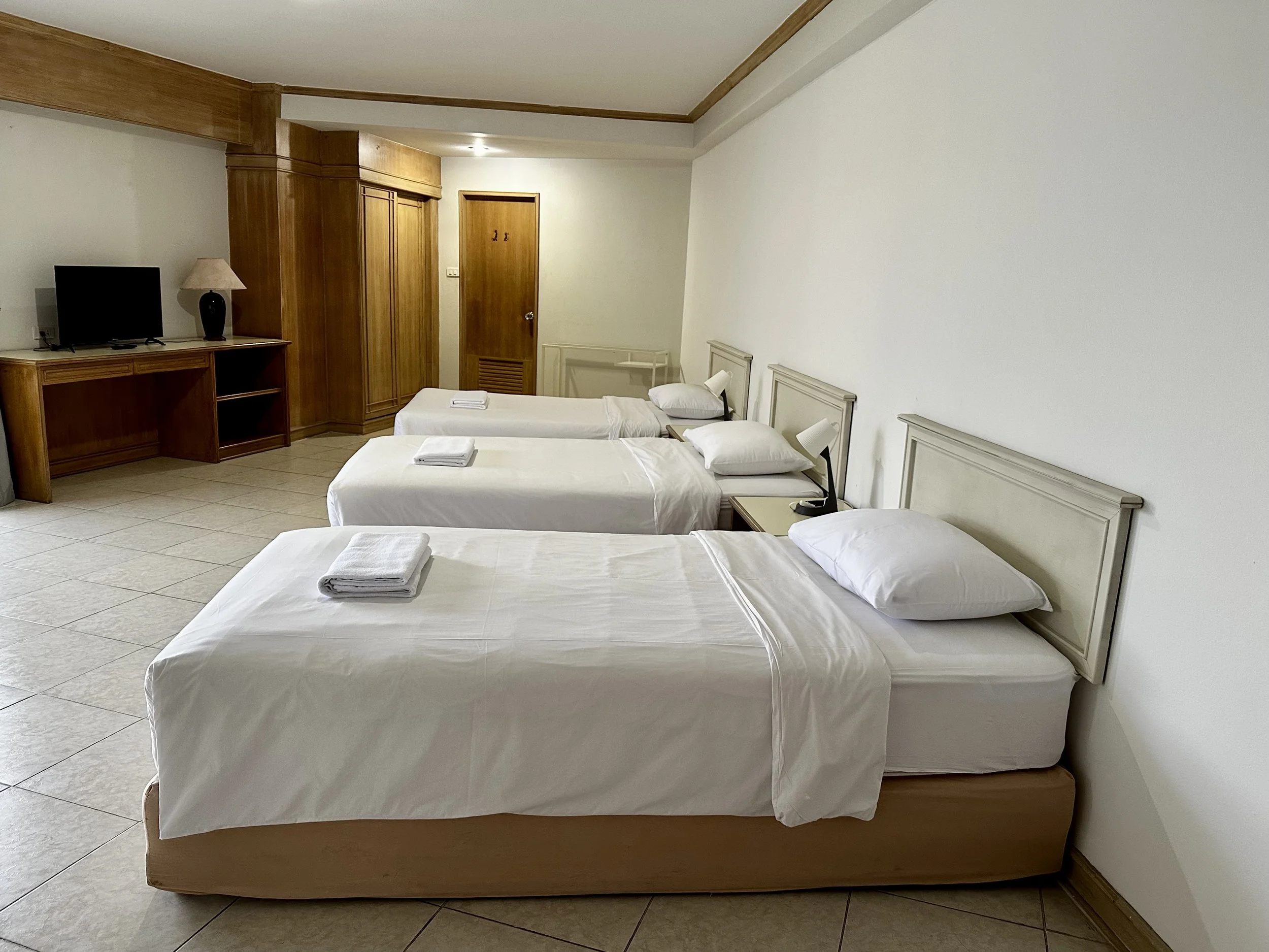 Every room is equipped with a TV, refrigerator, hot kettle, hair dryer, and complimentary bottled water and instant coffee.
